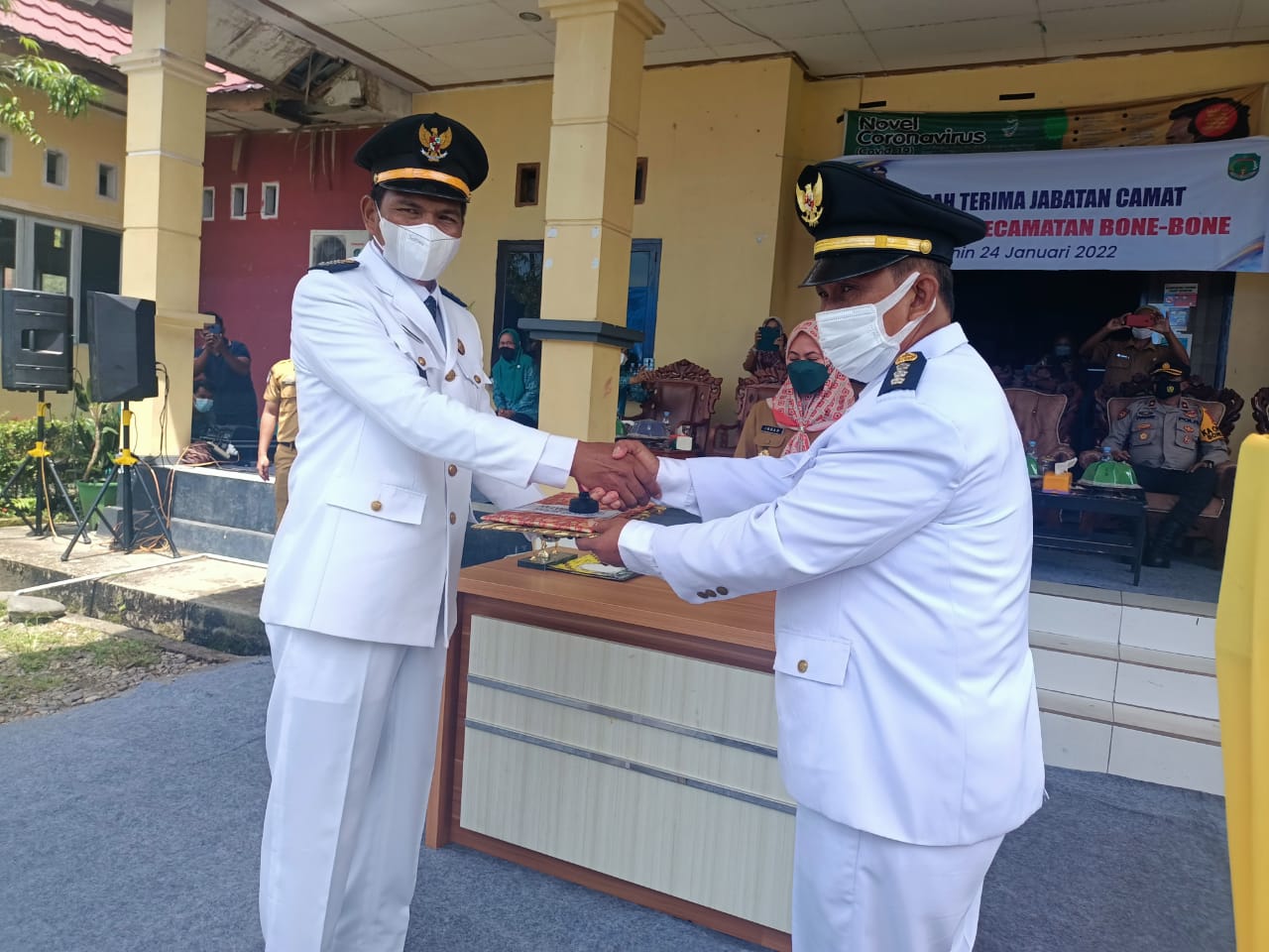 Serah terima jabatan camat Bone-Bone tersebut dirangkaikan juga dengan penyerahan penghargaan kepada Syahruddin S. Sos dari Pemerintah Daerah Kabupaten Luwu Utara karena keberhasilannya dalam proses vaksinasi warga kecamatan Bone-Bone yakni mencapai persentase 83,30 persen dikecamatan yang dipimpinnya dari 15 Kecamatan yang ada dalam wilayah kabupaten Luwu utara, dan juga merupakan Camat paling lama menduduki jabatan di Kecamatan Bone-Bone.