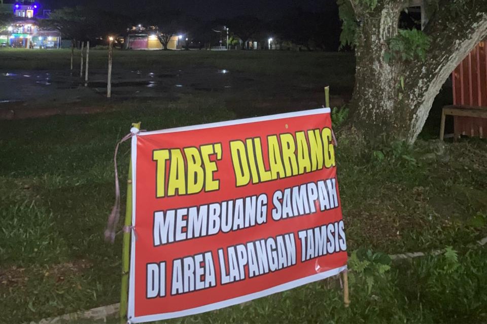 Imbauan ini dikeluarkan dalam bentuk spanduk atau poster besar yang dipasang di tepi Lapangan Tamsis Masamba, Senin (9/3/2026). Langkah ini diambil menyusul meningkatnya volume sampah yang berserakan di sekitar lapangan usai aktivitas olahraga pagi dan sore.