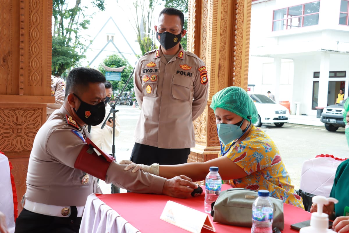 Kapolres Toraja Utara AKBP Eko Suroso, S.ik saat memantau kegiatan mengungkapkan bahwa vaksin booster disuntikkan terhadap personel Polres Toraja Utara beserta Polsek jajaran, meliputi para pejabat utama (PJU), para kapolsek dan personel Polri.